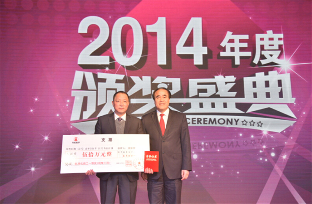 2015-02-02 集團2014年度總結表彰大會暨頒獎盛典隆重召開 1月31日上午,集團2014年度總結表彰大會暨頒獎盛典在總部隆重召開。全體行政人員、項目經理、優秀班組長及家屬共1000余人參加了大會。會議對2014年度工作情況進行了回顧與總結,表彰獎勵了2014年度先進集體、先進項...