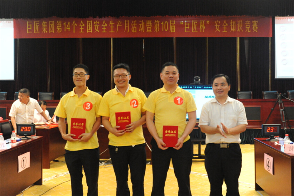 為全面貫徹落實全國第14個安全生產月活動的精神,全面提高廣大安全生產從業人員的安全知識,達到“以賽促學、以學促用、保證安全生產”目的,6月24日,集團開展了以“加強安全法治,保障安全生產”為主題的第10屆“巨匠杯”安全生產知識競賽。三個管理公司各派2支代表隊參加了比賽。集團全體行政員工和項目部員工觀摩比賽。